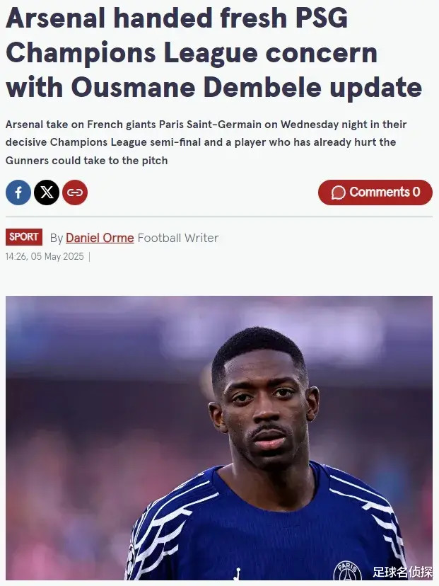 固然巴黎锋线东谈主才济济,但有莫得登贝莱永别信托是有的,是以登贝莱能复出,对阿森纳信托是坏讯息。