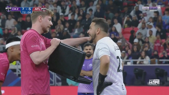 比赛最令东说念主记起的一幕发生在第74分钟。那时“野兽先生”方位的军队取得了一个点球契机,有望将比分追至6比7。而他走向点球点,但偶然表示场边东说念主员拿来一个行李箱,箱子掀开后,内部是一万好意思元现款。
