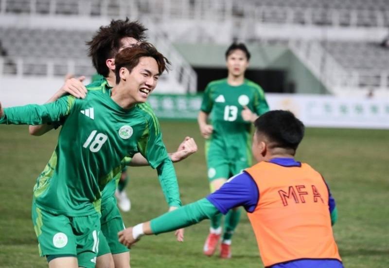 图为澳门队进球后庆祝。澳门特区体育局供图