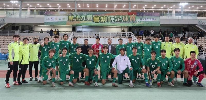 图为澳门队得回“粤澳杯”第二回合比赛奏效。澳门特区体育局供图